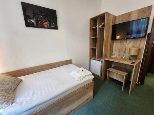 Hotel Pension City pleasantly surprised us, above all, with its great location. It is located right on the edge of the historic center of Pilsen, approx. 200 m from the main square, so you can walk everywhere beautifully. It is located opposite the Marriott Hotel, with free reserved parking right in front of the guesthouse, which we were happy to use. Both receptionists were very pleasant, as was the lady at breakfast in the morning, who even offered us several variants of egg preparation in addition to the rich breakfast. Although the rooms are smaller, they are clean and completely adequate for an overnight stay in the center of Pilsen at a reasonable price. I will be happy to come back.
