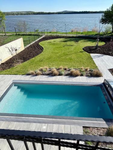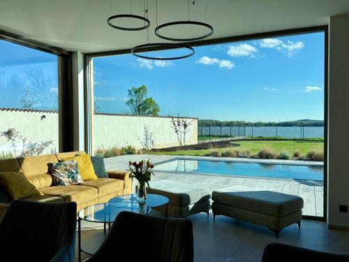 Villa with pool by the lake Mušovské jezero位于帕索尔维基,提供带免费WiFi的池景客房,配备季节性室外泳池、花园和露台。这家别墅配有免费私人停车位。客人可以在周边地区体验徒步和骑行等活动。