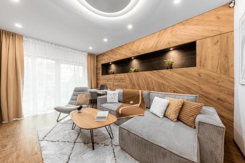 这家空调公寓配有2间卧室、起居室、带冰箱和咖啡机的设施齐全的厨房以及1间带淋浴设施和免费洗浴用品的浴室。这家公寓还配备休息区、洗衣机以及1间带吹风机的浴室。