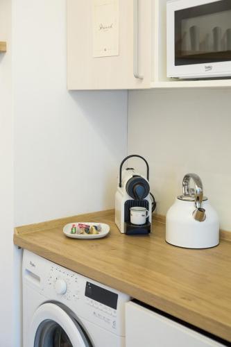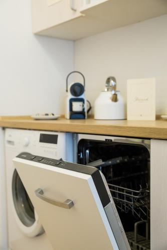 这家公寓拥有1间卧室、带卫星频道的平板电视、带冰箱和洗碗机的设施齐全的厨房、洗衣机以及1间带淋浴设施的浴室。1间浴室配有浴缸,也配备免费洗浴用品,提供毛巾和床上用品。