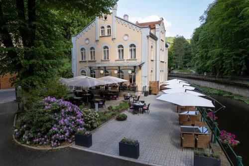 A former summer residence of the countess of Schaumburg Lippe, the small but stylish Villa Basileia Riverside is peacefully situated on the bank of the Teplá river, close to the spa area.