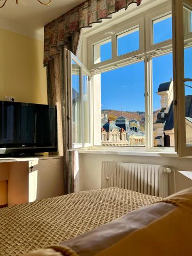 The Hotel Zlaty Sloup is situated in the heart of Karlovy Vary by the Tepla river, a few steps from the famous Colonnade with the thermal springs. Free WiFi is available throughout the property.