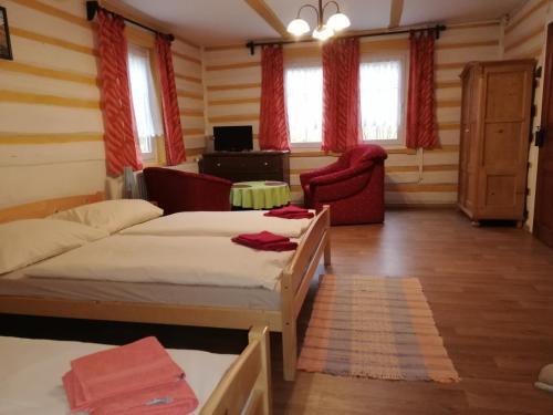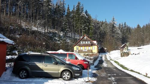 Pension Vladimír位于扬斯凯拉兹涅,距离斯特拉内巴士站有23公里,提供花园、免费私人停车位、共用休息室和滑雪至门口雪道。这家旅馆配备滑雪通行证售票处,距离The Grandmother's Valley有38公里,距离韦斯特多姆城有40公里。住宿提供免费WiFi和共用厨房。