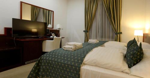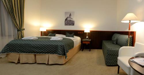 酒店的餐厅供应捷克特色菜肴和国际美食,每天早晨提供早餐。
