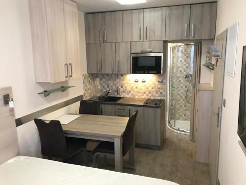这家公寓拥有1间卧室、平板电视、带冰箱和微波炉的设施齐全的小厨房以及1间带淋浴设施的浴室。这家公寓配备毛巾和床上用品。