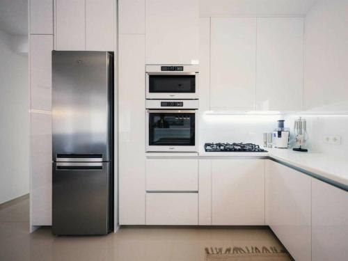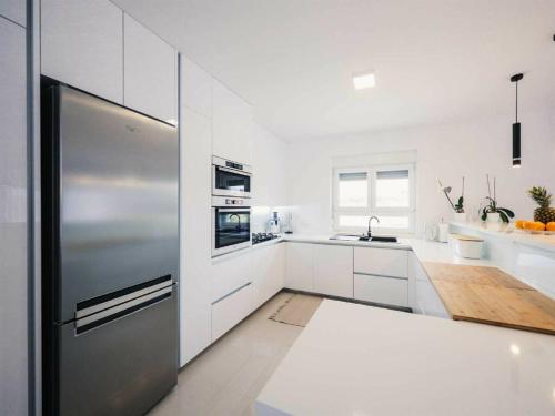 这家空调别墅配备3间卧室、有线频道电视、用餐区、带冰箱的厨房和起居室。