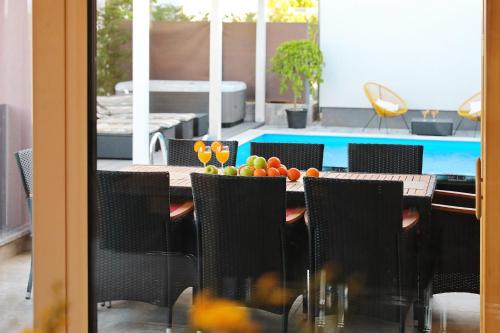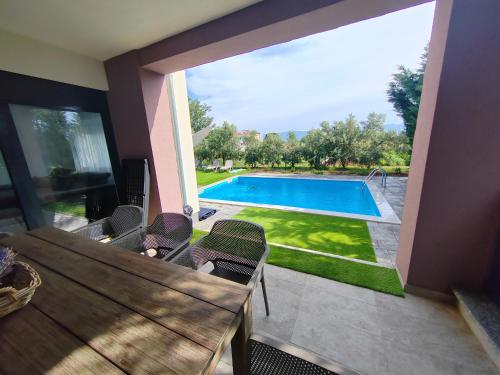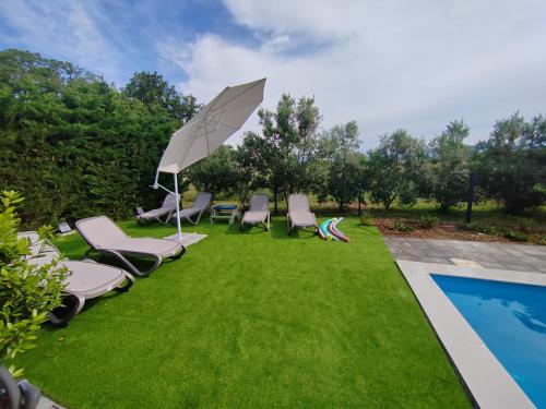 这家别墅享有池景,为客人提供露台、休息区、卫星频道平板电视、带冰箱和洗碗机的设施齐全的厨房以及带淋浴设施和吹风机的私人浴室。住宿还提供烤箱、微波炉、炉灶、咖啡机和电热水壶。