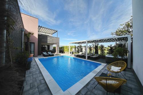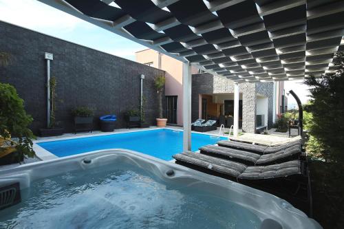 这家别墅享有池景,为客人提供露台、休息区、卫星频道平板电视、带冰箱和洗碗机的设施齐全的厨房以及带淋浴设施和吹风机的私人浴室。住宿还提供烤箱、微波炉、炉灶、咖啡机和电热水壶。