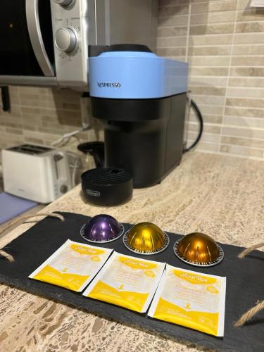 这家公寓提供露台,享有花园景,拥有1间卧室、起居室、平板电视、带冰箱和微波炉的设施齐全的厨房以及1间带浴缸的浴室。这家公寓也配有休息区和1间浴室。