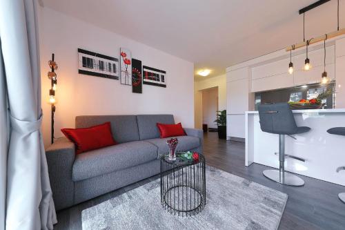 这家空调公寓配有1间卧室、起居室、带冰箱和咖啡机的设施齐全的厨房以及1间带淋浴设施和吹风机的浴室。这家公寓也配备休息区和1间浴室。