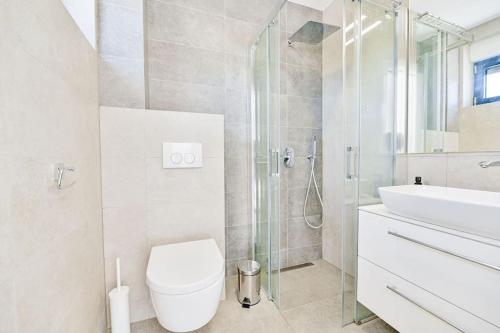 The spacious apartment comes with 3 bedrooms, 4 bathrooms, bed linen, towels, a flat-screen TV with streaming services, a dining area, a fully equipped kitchen, and a terrace with sea views. A private entrance leads guests into the apartment, where they can enjoy some wine or champagne. The property offers garden views.
