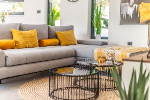 这家空调别墅配有3间卧室、起居室、带冰箱和咖啡机的设施齐全的厨房以及3间带淋浴设施和吹风机的浴室。这家别墅也为客人提供休息区和3间浴室。