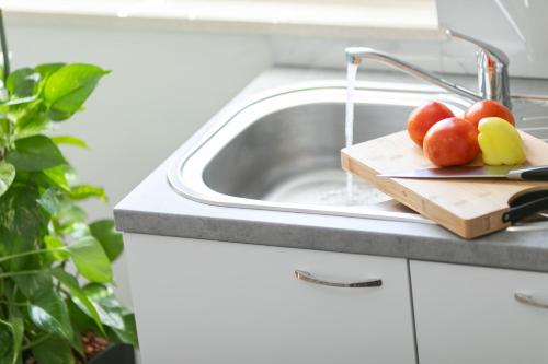 这家空调公寓配有1间卧室、起居室、带冰箱和电热水壶的设施齐全的厨房以及1间带淋浴设施和吹风机的浴室。这家公寓也为客人提供休息区和1间浴室。
