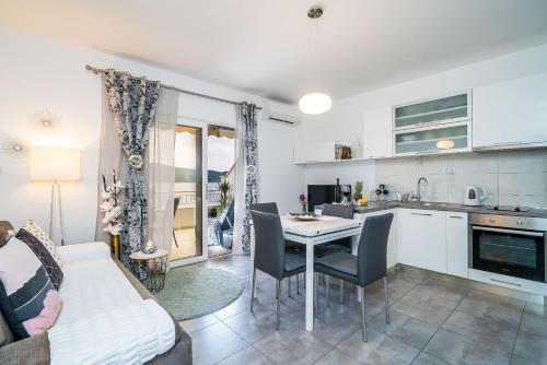 这家公寓享有海景,为客人提供露台、休息区、卫星频道平板电视、带冰箱和洗碗机的设施齐全的厨房以及带淋浴设施和免费洗浴用品的私人浴室。住宿还提供烤箱、炉灶、咖啡机和电热水壶。