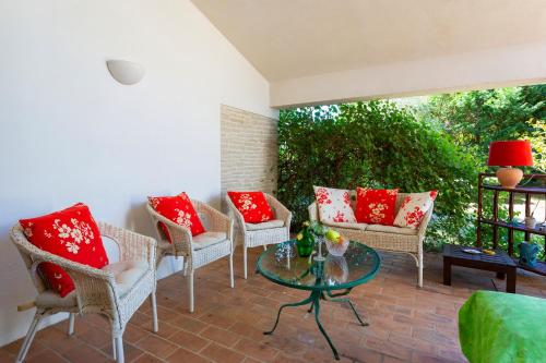 这家空调别墅配有7间卧室、起居室、带冰箱和咖啡机的设施齐全的厨房以及5间带坐浴盆和淋浴设施的浴室。5间浴室配有热水浴池,也为客人提供免费洗浴用品,提供毛巾和床上用品。