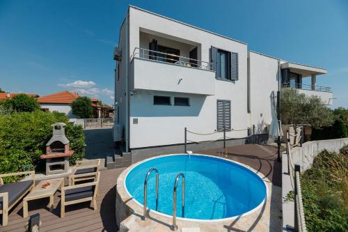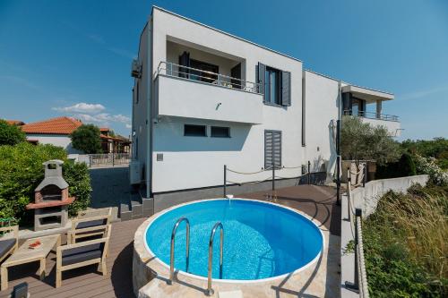 MALO Ferienvilla Privlaka, Pool, Boje, WI-FI, Wallbox位于普利拉卡,享有海景,提供免费自行车、户外游泳池、花园、露台和烧烤设施。住宿提供免费WiFi,内部提供私人停车位。