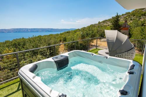 Villa Mirjam with swimming pool, jacuzzi and sea view位于诺维·维诺多尔斯基,配备带免费WiFi的海景客房,配有季节性室外泳池和露台。这家住宿提供私人泳池和免费私人停车位。