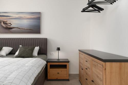 这家空调公寓配有2间卧室、起居室、带冰箱和咖啡机的设施齐全的厨房以及1间带淋浴设施和吹风机的浴室。这家公寓也拥有休息区和1间浴室。