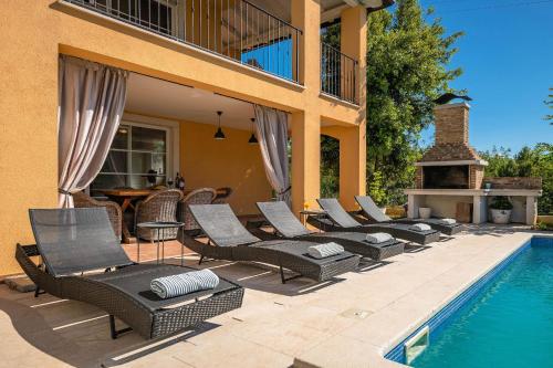 Villa Ari 8+2位于卡尼卡,提供享有海景和池景的露台、按季节开放的室外泳池、健身中心以及桑拿房。这家自助式别墅配有私人泳池、花园、烧烤设施、免费WiFi和免费私人停车位。