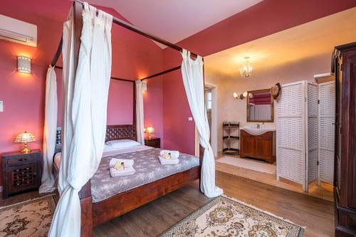 这家空调别墅配有4间卧室、起居室、带冰箱和咖啡机的设施齐全的厨房以及5间带淋浴设施和热水浴池的浴室。这家别墅还提供休息区、洗衣机以及5间带吹风机的浴室。