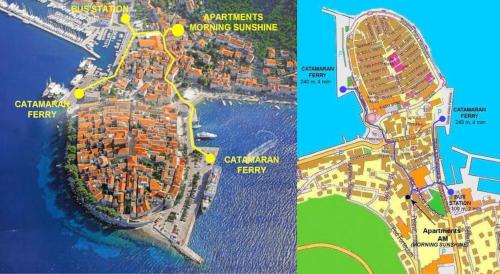 Apartments Morning Sunshine坐落于科尔丘拉,距离盧卡科爾祖蘭斯卡海灘(Luka Korculanska Beach)有不到2分钟步行路程,距离伊施多杜瓦那海灘(Ispod Duvana Beach)有400米,配备免费WiFi和休息区。