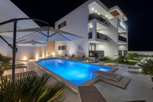 APARTMANI OLIMP提供季节性室外泳池、露台以及带阳台和免费WiFi的空调住宿,距离圣朱拉吉海滩(Sveti Juraj Beach)有8分钟步行路程。内部提供私人停车位。