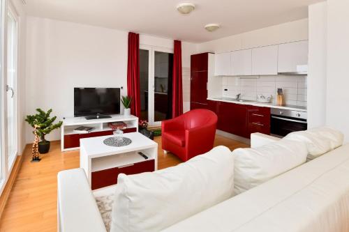 Apartmani Astrado Petrčane位于佩特坎内,享有海景,配备季节性室外泳池、健身中心、露台、餐厅和酒吧。住宿配备免费WiFi,内部提供私人停车位。