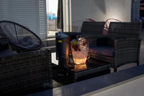 这家空调别墅配有2间卧室、起居室、带冰箱和电热水壶的设施齐全的厨房以及2间带淋浴设施的浴室。这家别墅也拥有休息区和2间浴室。