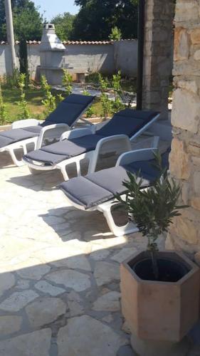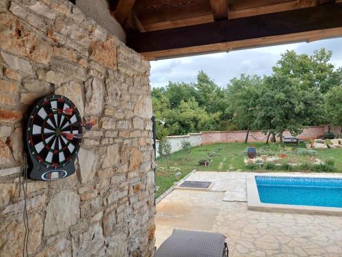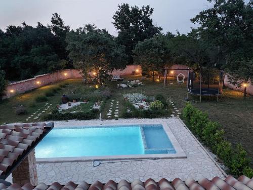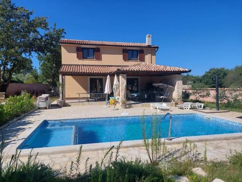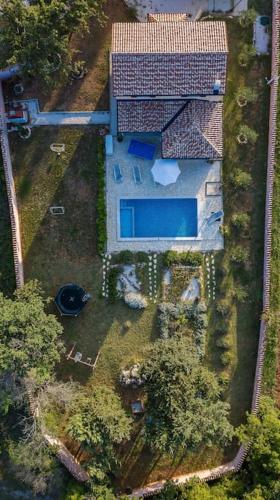 Nice holiday houses with Mediterranean garden坐落于Divšići,配有花园和按季节开放的室外泳池,享有池景。这家住宿的客人可以使用露台、乒乓球桌、免费私人停车位和免费WiFi。