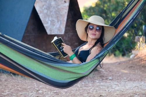 Each tent is equipped with a mattress, pillows, a light and they offer sea views and hammocks.