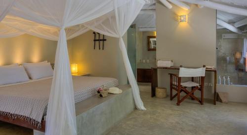 Kobe度假村的每间套房均设有空调、迷你吧、休息区以及一间带淋浴和坐浴盆的浴室,配备了挂着蚊帐的床铺以及卫星电视,享有海景或花园景。