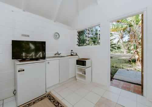 Each bungalow has a private outdoor veranda with table and chairs. There is a cofee plunger, free toiletries, and a TV. All bungalows have a private bathroom and a kitchen with microwave, refrigerator and cooking utensils.