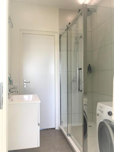 这家空调度假屋配有2间卧室、起居室、带冰箱和咖啡机的设施齐全的厨房以及1间带淋浴设施和吹风机的浴室。这家度假屋也提供休息区和1间浴室。