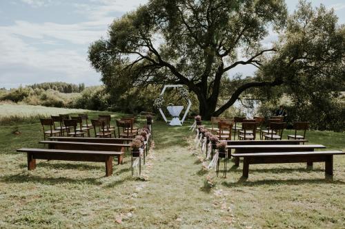 Brīvdienu māja "Avotiņš"享有河景,配备露台和庭院,距离奥佐尔萨拉火车站约有49公里。这家住宿享有花园景。