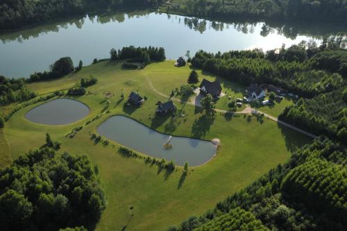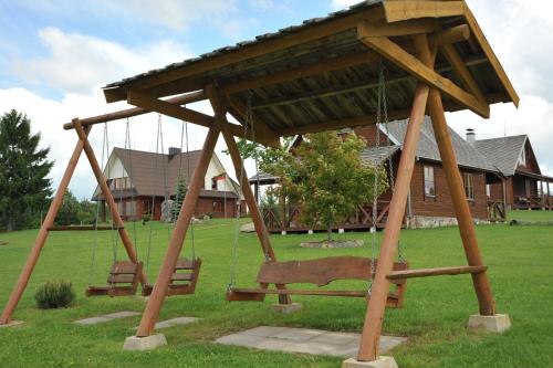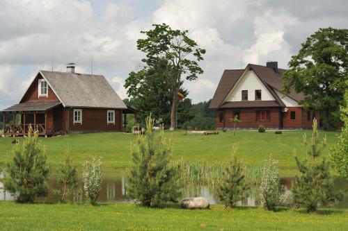 Country Houses Vidų Sodyba的客人可在住宿内部玩飞镖,或在周边地区体验垂钓。
