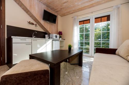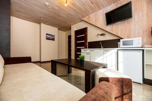 这家旅馆的每间客房都提供衣柜和平板电视。每间客房都配备电热水壶以及带淋浴设施和吹风机的私人浴室。部分客房配备配有带冰箱的小厨房。Jūros vila的客房配有床上用品和毛巾。
