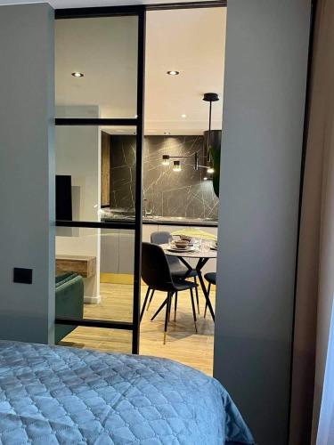 这家空调公寓配有1间卧室、起居室、带冰箱和咖啡机的设施齐全的厨房以及1间带坐浴盆和淋浴设施的浴室。1间浴室配有浴缸,也拥有免费洗浴用品,提供毛巾和床上用品。