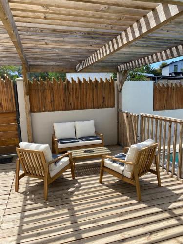 这家空调别墅配有4间卧室、起居室、带冰箱和咖啡机的设施齐全的厨房以及2间带淋浴设施和吹风机的浴室。这家别墅也为客人提供休息区和2间浴室。