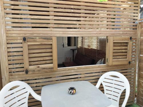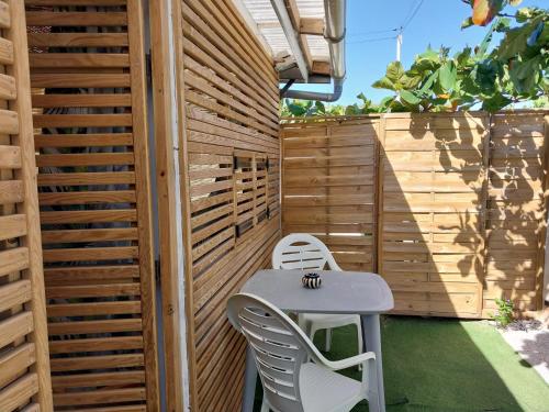 这家度假屋配备1间卧室、1间浴室、床上用品、毛巾、平板电视、用餐区、设施齐全的小厨房以及海景露台。这家空调度假屋还提供洗衣机以及1间带淋浴设施的浴室。
