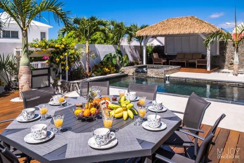 Villa Rosaya位于圣皮埃尔,距离圣皮埃尔海滩(Plage de Saint-Pierre)有1.8公里。客人可以使用热水浴池。这家自助式别墅配有私人泳池、花园和免费私人停车位。