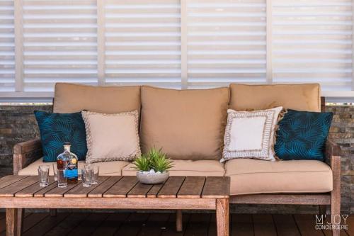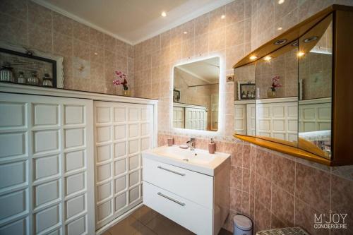 这家别墅配有4间卧室以及2间带浴缸和吹风机的浴室。这家空调别墅还提供平板电视、带冰箱的设施齐全的厨房、休息区、洗衣机以及2间带坐浴盆、淋浴设施和热水浴池的浴室。