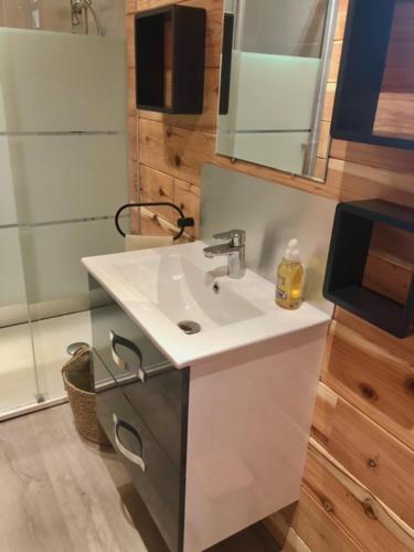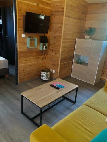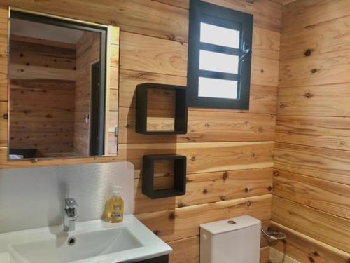 这家小木屋配备1间卧室、带冰箱和微波炉的厨房以及1间带淋浴设施、免费洗浴用品和洗衣机的浴室。这家小木屋还提供平板电视以及1间带吹风机的浴室。