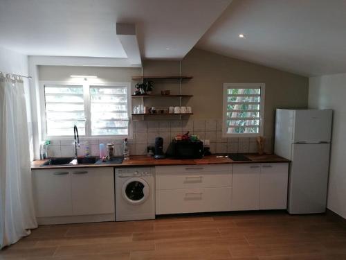 这家空调公寓配有1间卧室、起居室、带冰箱和咖啡机的设施齐全的厨房以及1间带淋浴设施的浴室。这家公寓也为客人提供休息区和1间浴室。