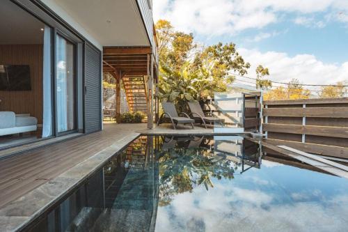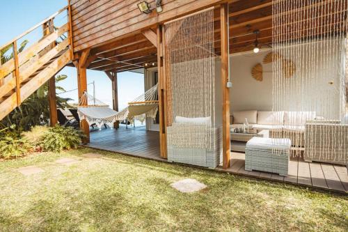 Villa Bleue Camaieu, avec piscine chauffée坐落于圣勒,距离马斯卡林植物园仅有1.7公里,配备户外游泳池、露台和免费WiFi。这家自助式别墅拥有私人泳池、花园和免费私人停车位。