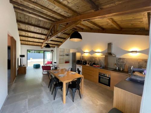 这家空调度假屋配有2间卧室、起居室、带冰箱和咖啡机的设施齐全的厨房以及1间带淋浴设施和吹风机的浴室。这家度假屋也提供休息区和1间浴室。