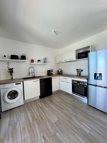 The holiday home is located on the ground floor and is equipped with 2 bedrooms, a flat-screen TV with cable channels and a fully equipped kitchen that provides guests with a dishwasher, an oven, a washing machine, a microwave and a toaster. Guests can take in the views of the pool from the terrace, which also has outdoor furniture. For added privacy, the accommodation features a private entrance.