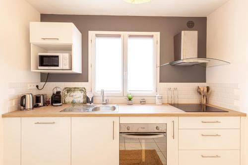 这家公寓配有3间卧室、4间浴室、床上用品、毛巾、带卫星频道的电视、设施齐全的厨房以及花园景露台。4间浴室提供淋浴设施和吹风机。
