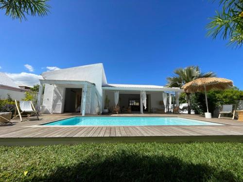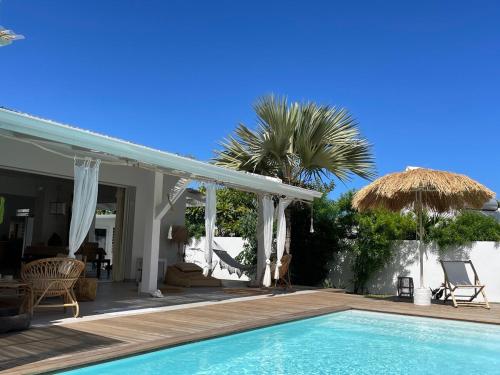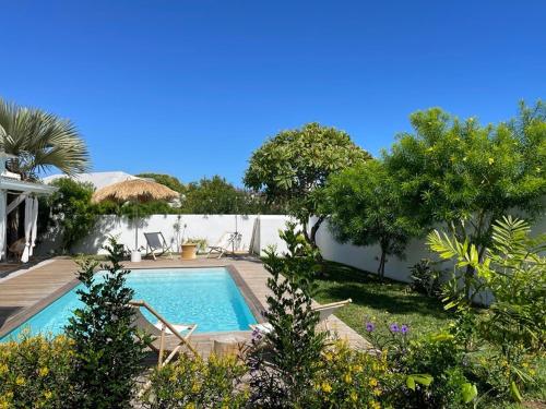 Villa de charme près des plages坐落于圣吉尔莱班,提供户外游泳池和共用休息室,距离布里桑特海滩(Plage des Brisants)有4分钟步行路程,距离The House of Coco有17公里,距离马斯卡林植物园有21公里。这家自助式度假屋拥有私人泳池、花园、烧烤设施、免费WiFi和免费私人停车位。