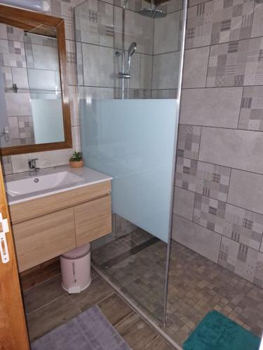 Charment Appartement avec vue sur mer享有海景,提供露台和阳台,距离Saga du Rhum约有15公里。这家住宿距离大安锡海滩(Plage de Grande Anse)有2公里,配备花园和免费私人停车位。