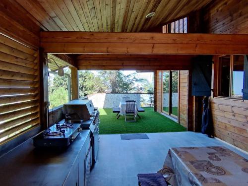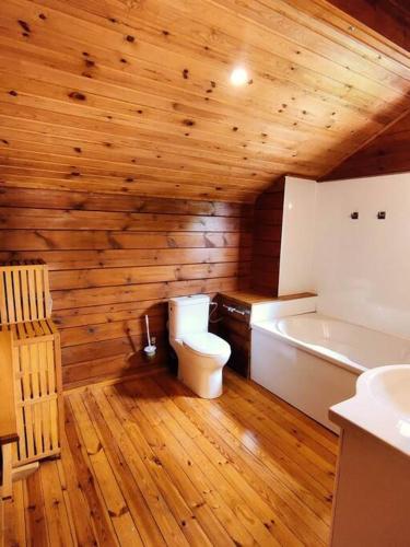 这家小木屋配有3间卧室、2间浴室、床上用品、毛巾、平板电视、设施齐全的厨房以及花园景露台。这家小木屋也为客人提供2间浴室。
